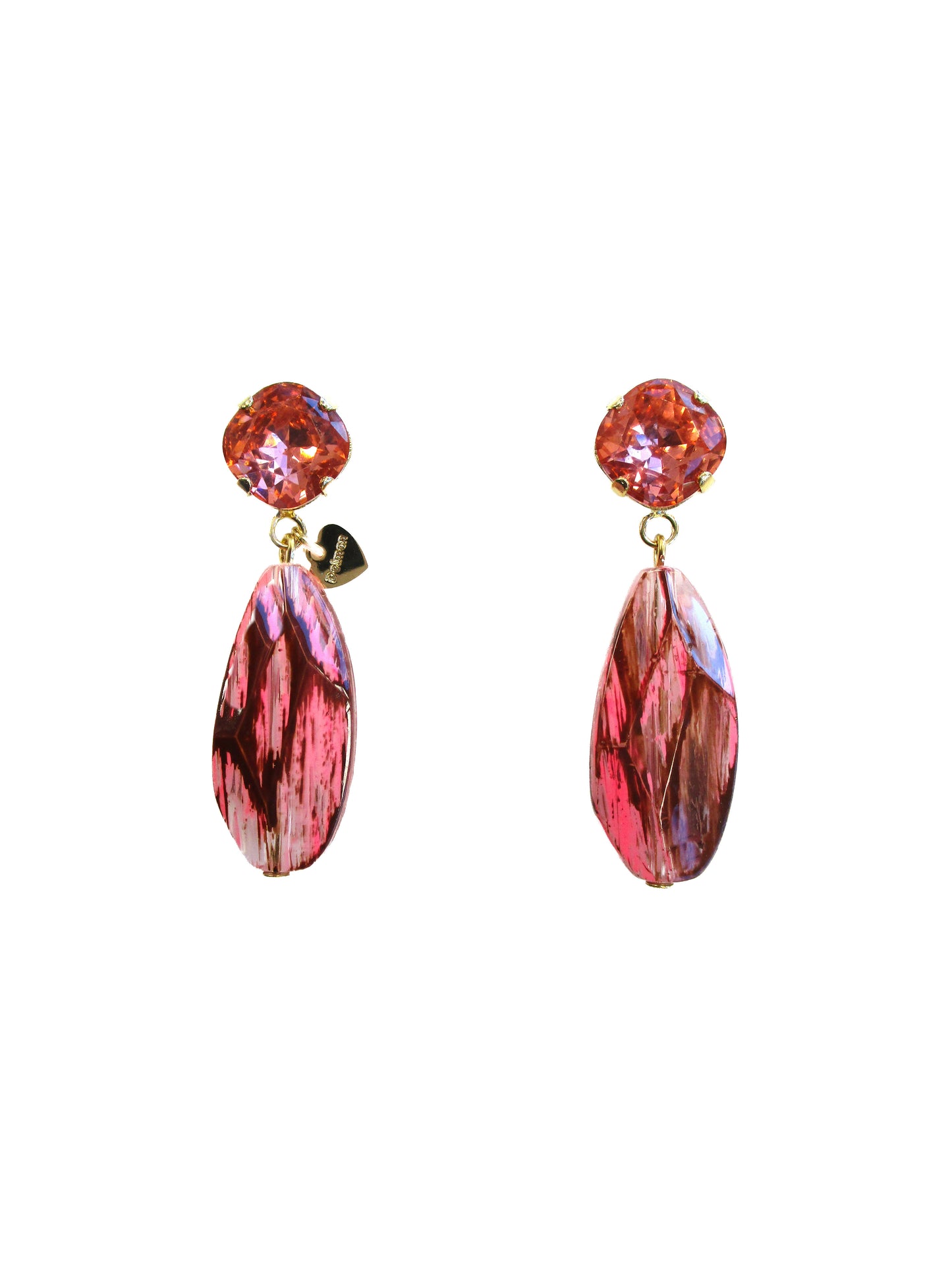 Orecchini pendenti con resine dipinte color fucsia - Acquerello