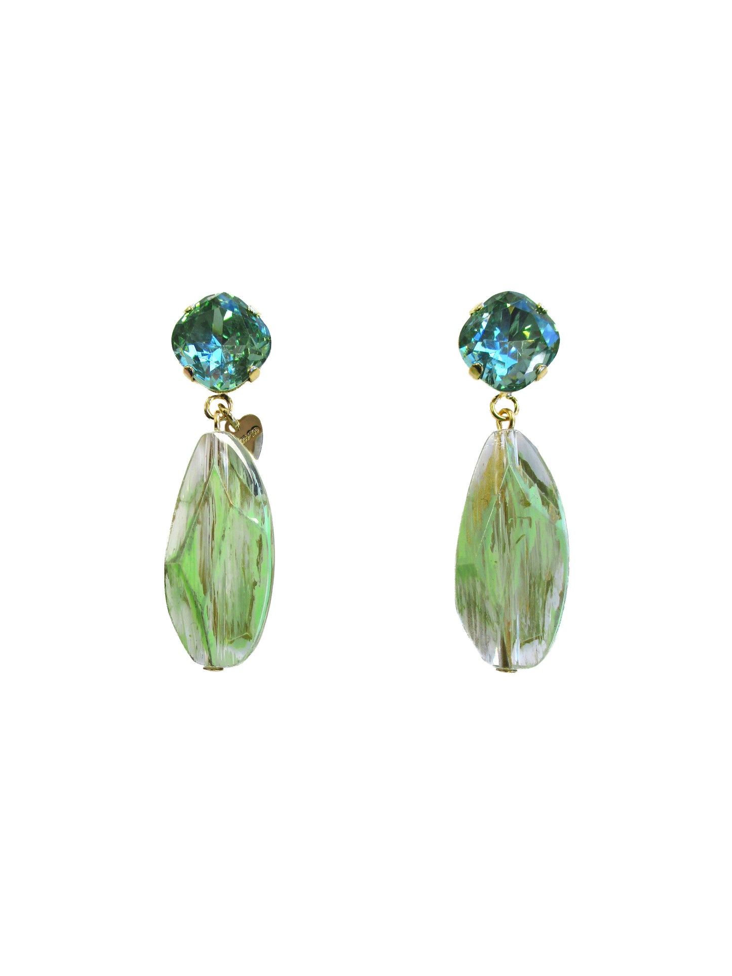 Orecchini pendenti con resine dipinte color oliva - Acquerello