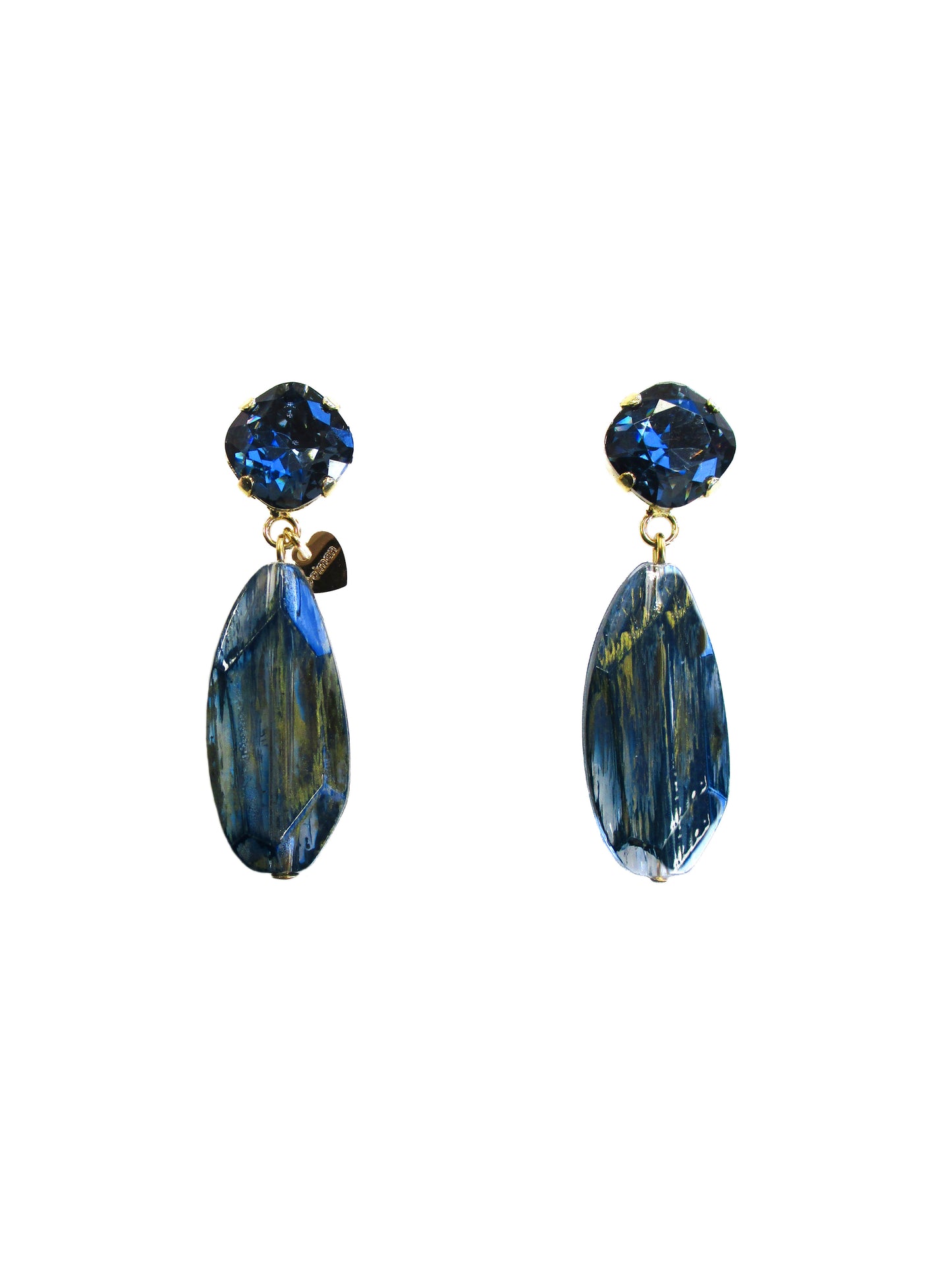 Orecchini pendenti con resine dipinte color blu - Acquerello