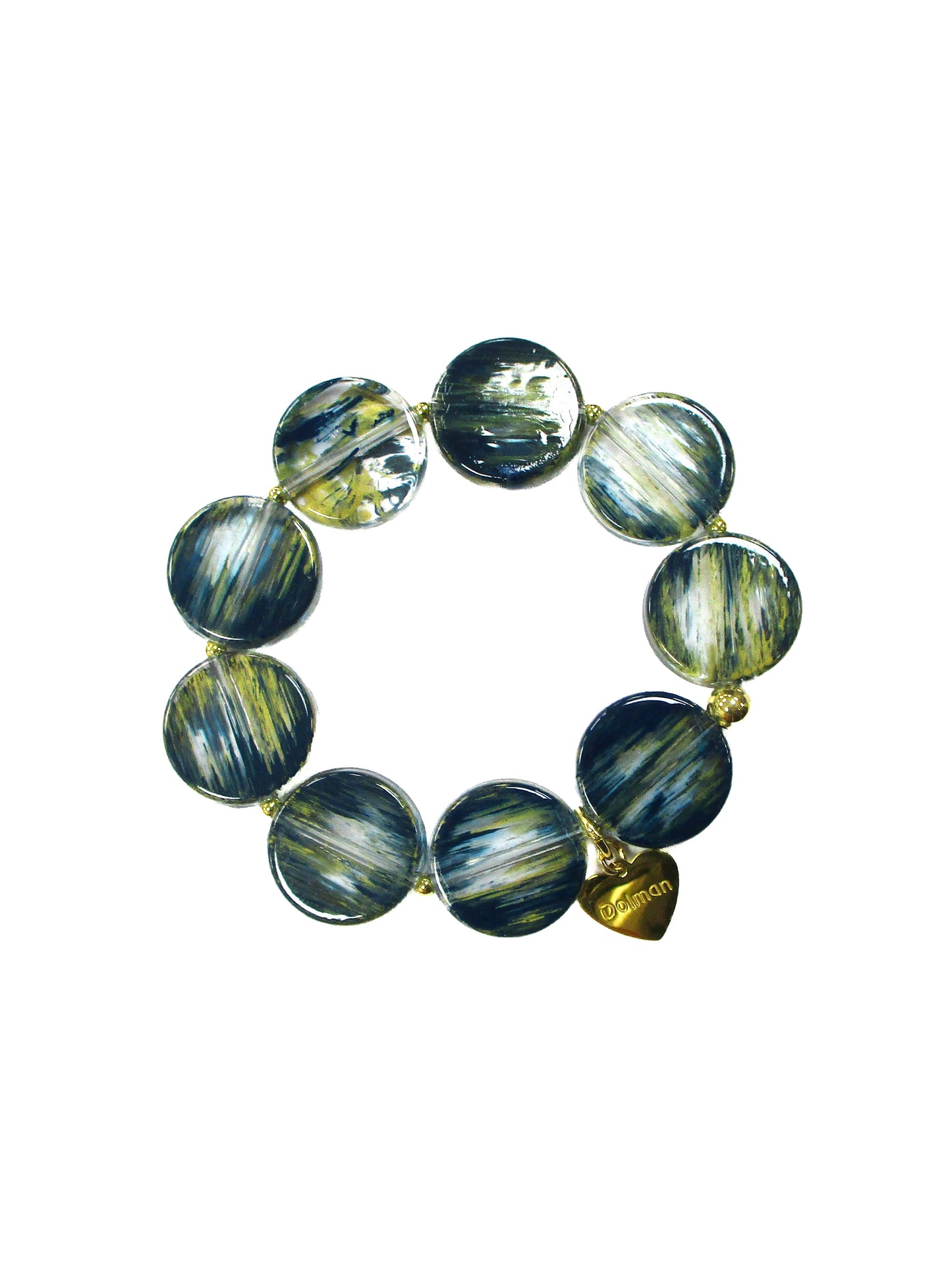 Bracciale elastico con cialde dipinte oliva - Acquerello