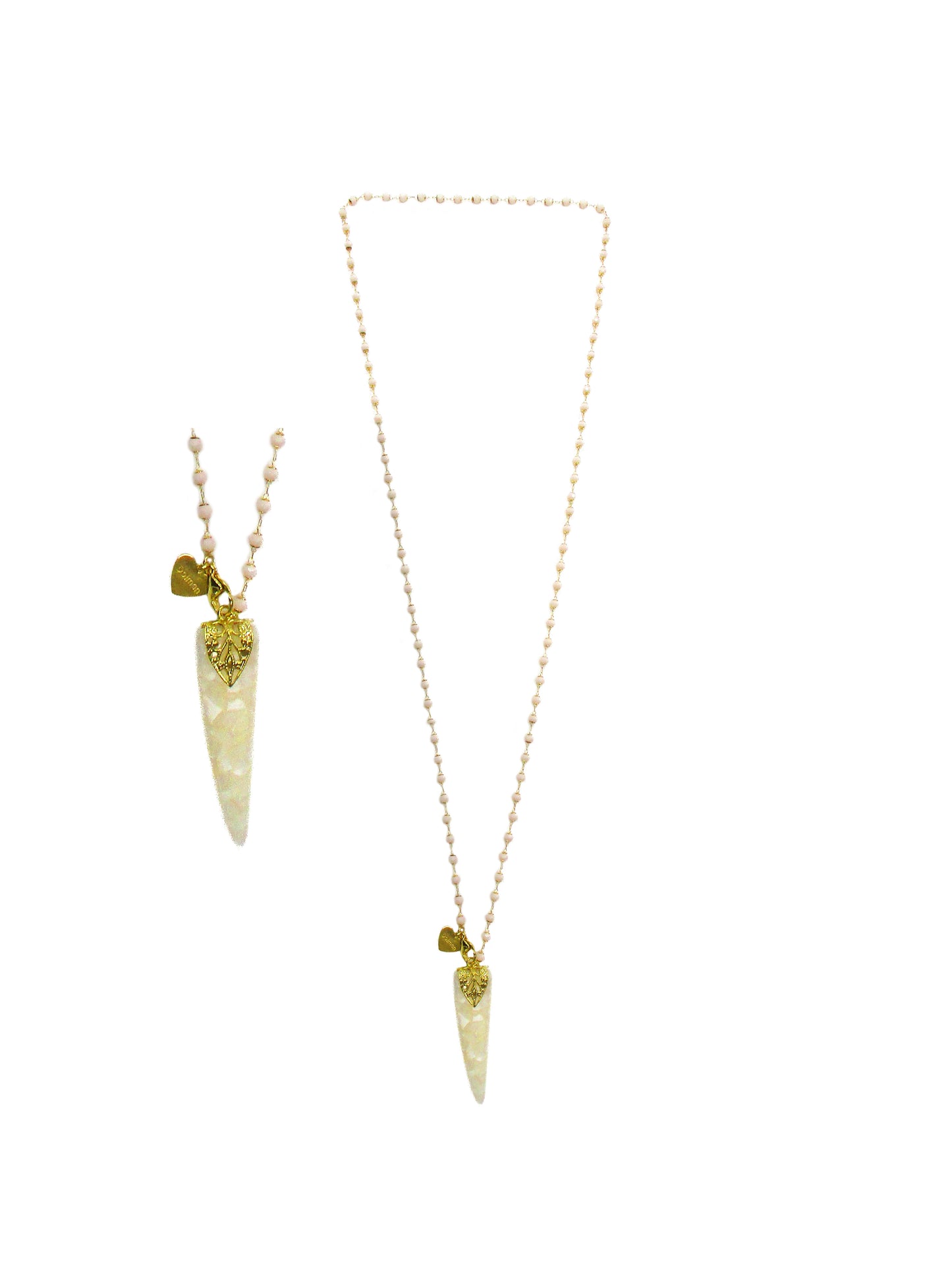 Collana con cristalli e ciondolo a cornetto marmorizzato avorio - Tarocchi