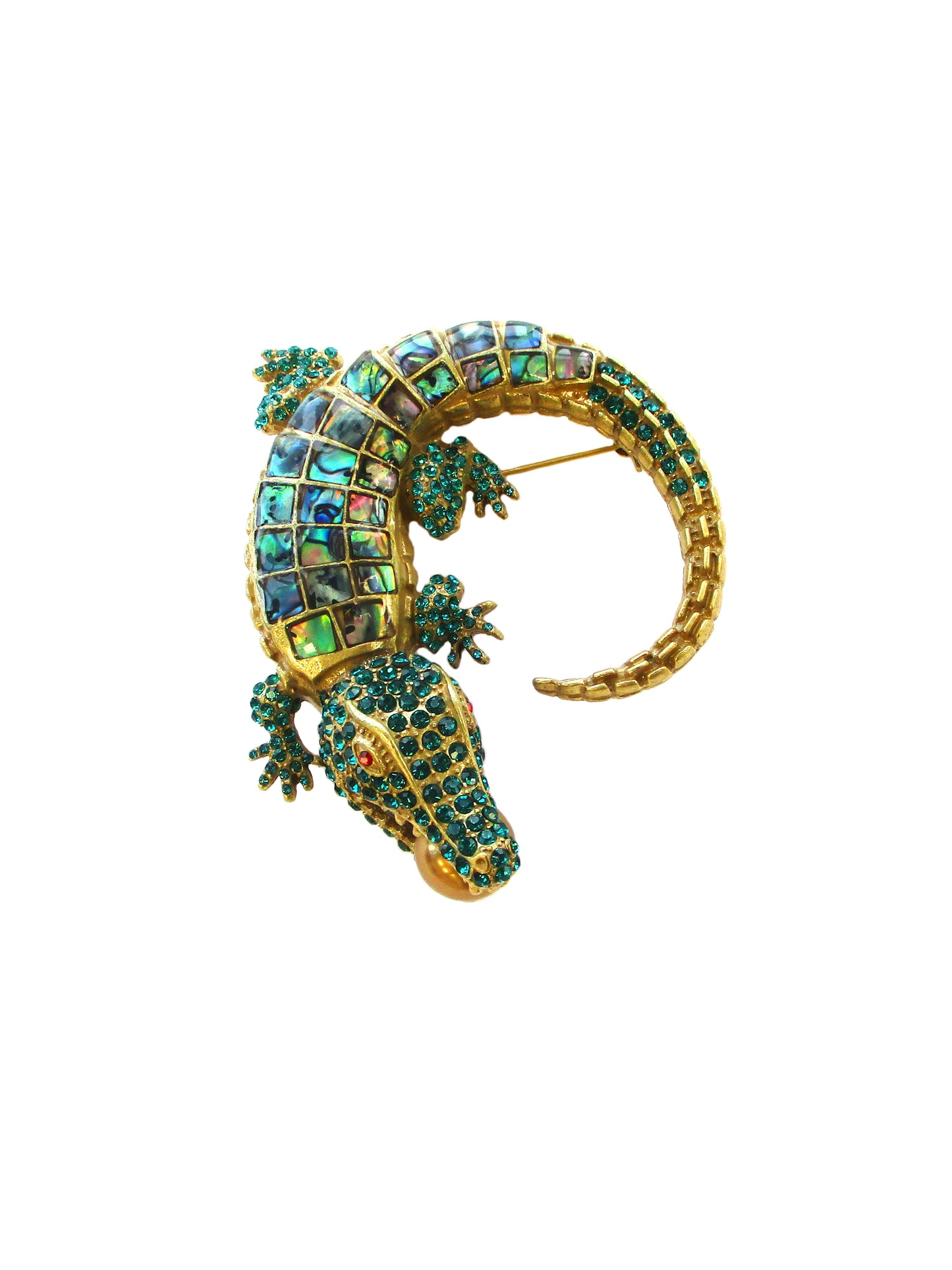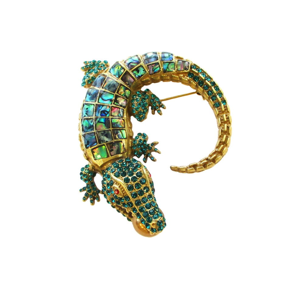Spilla coccodrillo con interventi in madreperla e strass Aida