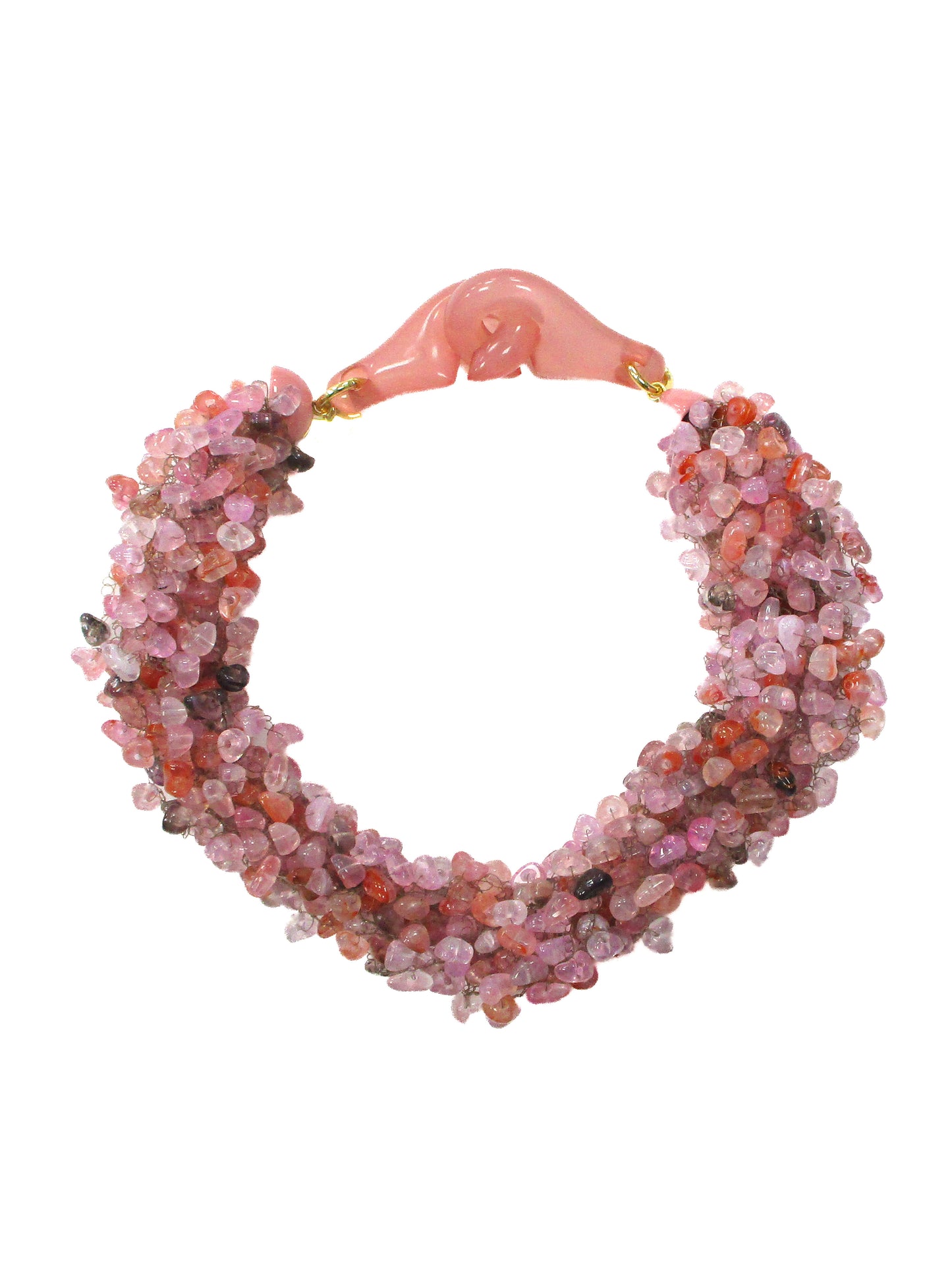 Girocollo multifili a crochet in resina color pesca - Clementina