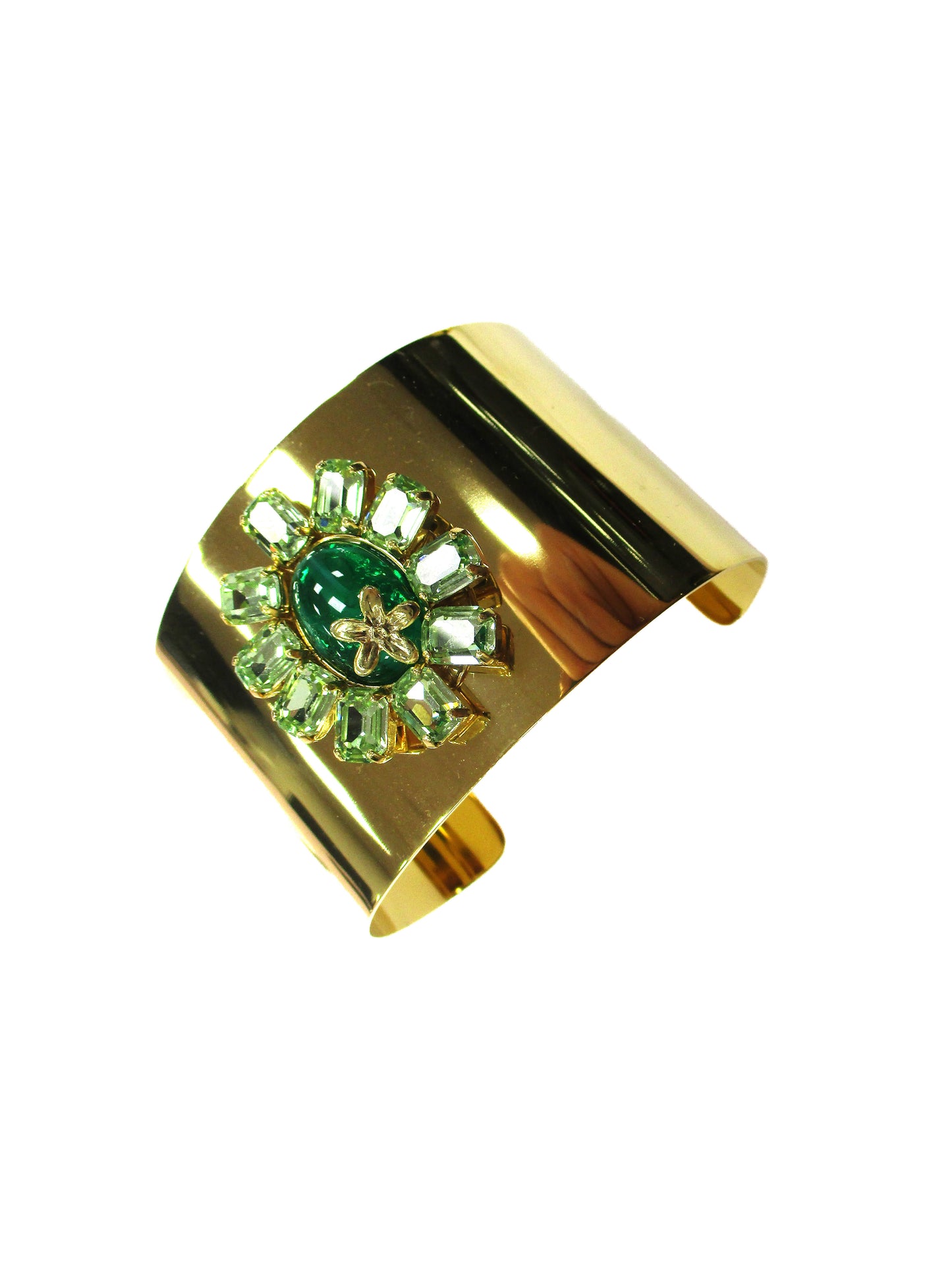 Bracciale manchette in acciaio color oro e motivo floreale in cristallo mix verde- Dalia
