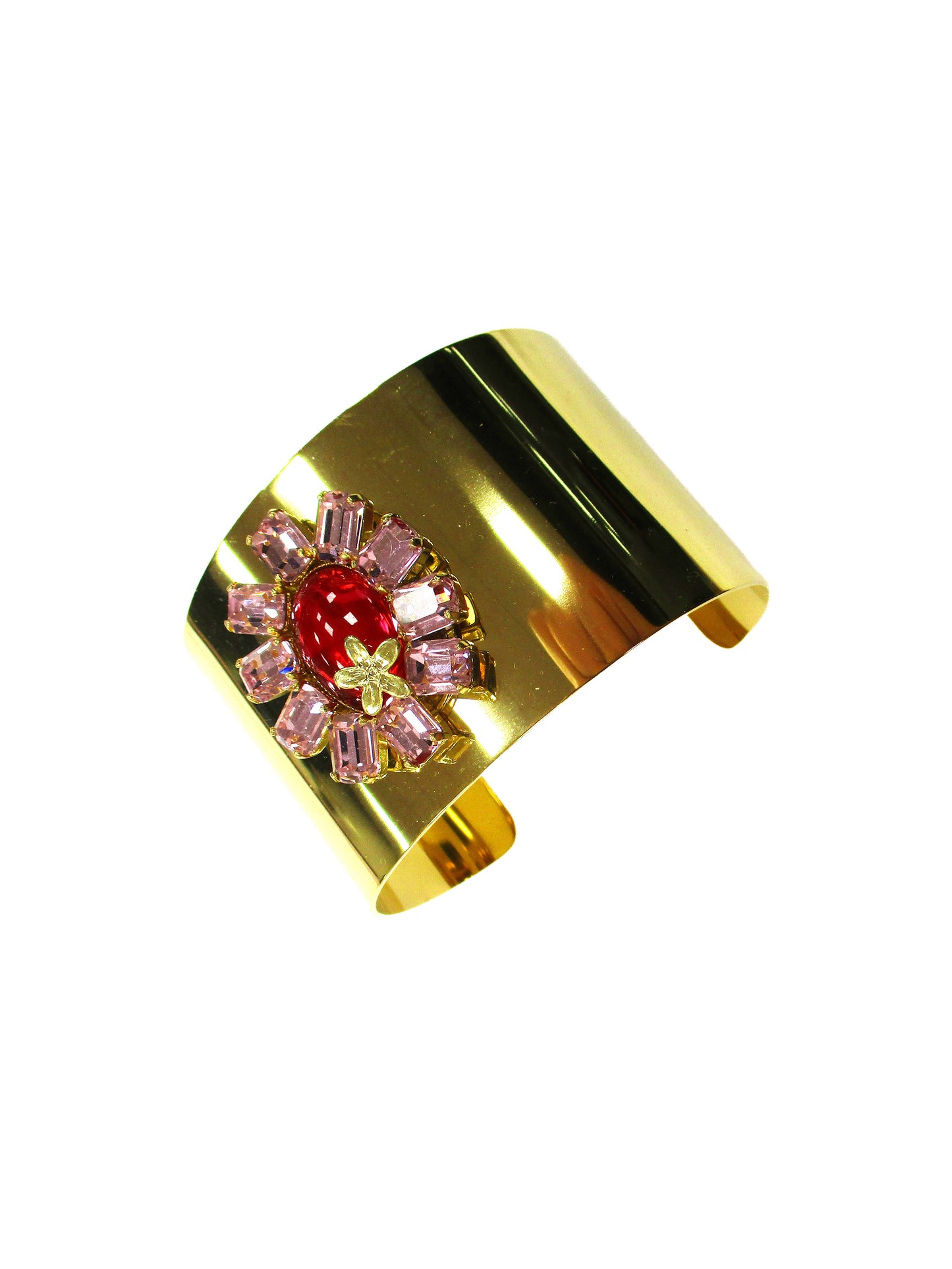 Bracciale manchette in acciaio color oro e motivo floreale in cristallo mix rosa - Dalia