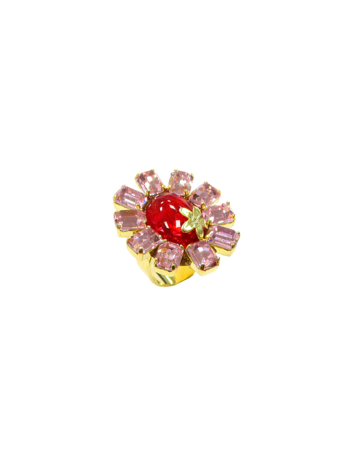 Anello con cabochon e petali di cristallo incastonati mix rosa - Dalia