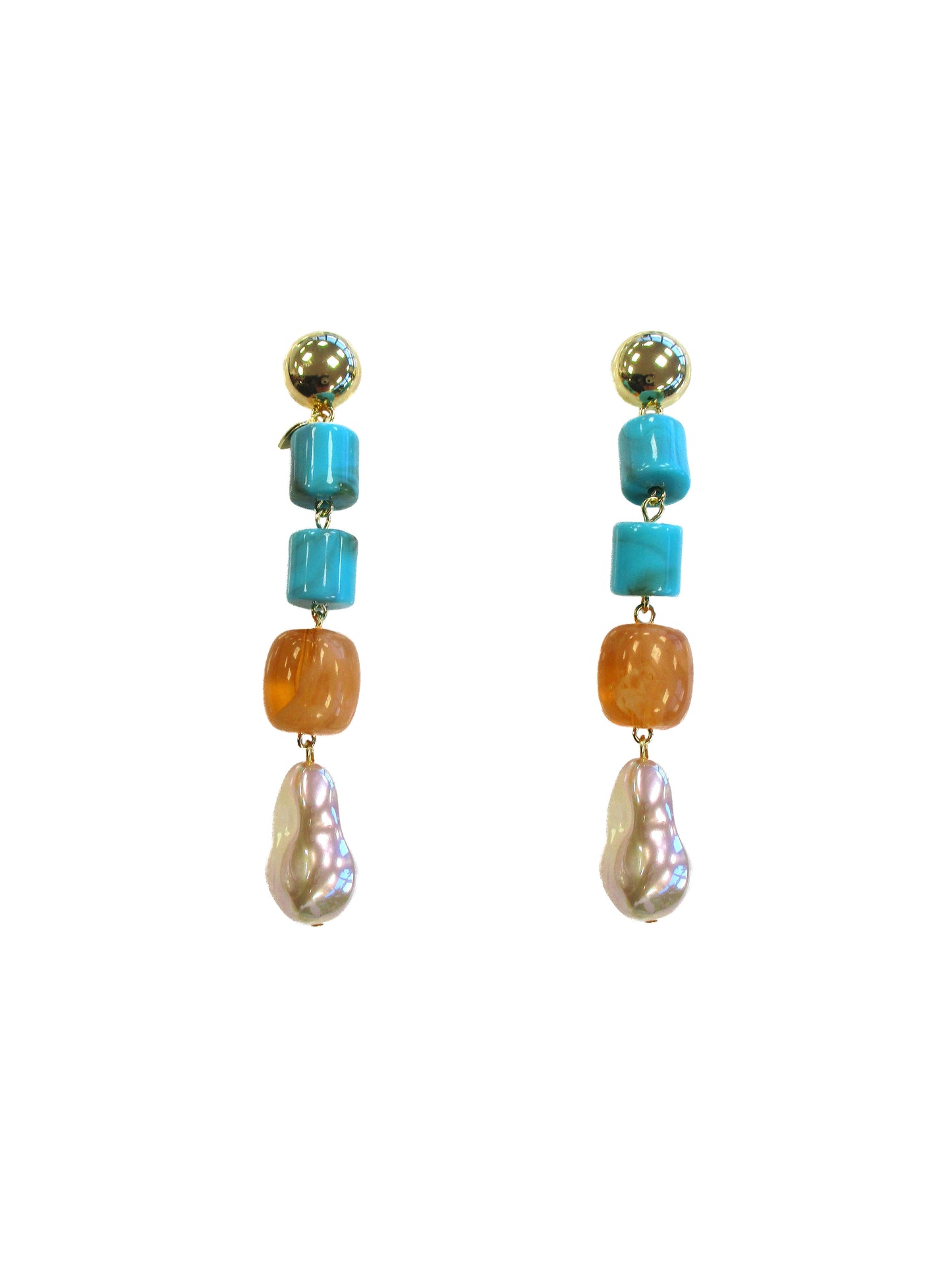 Orecchini pendenti incatenati con resine perlate - Galapagos