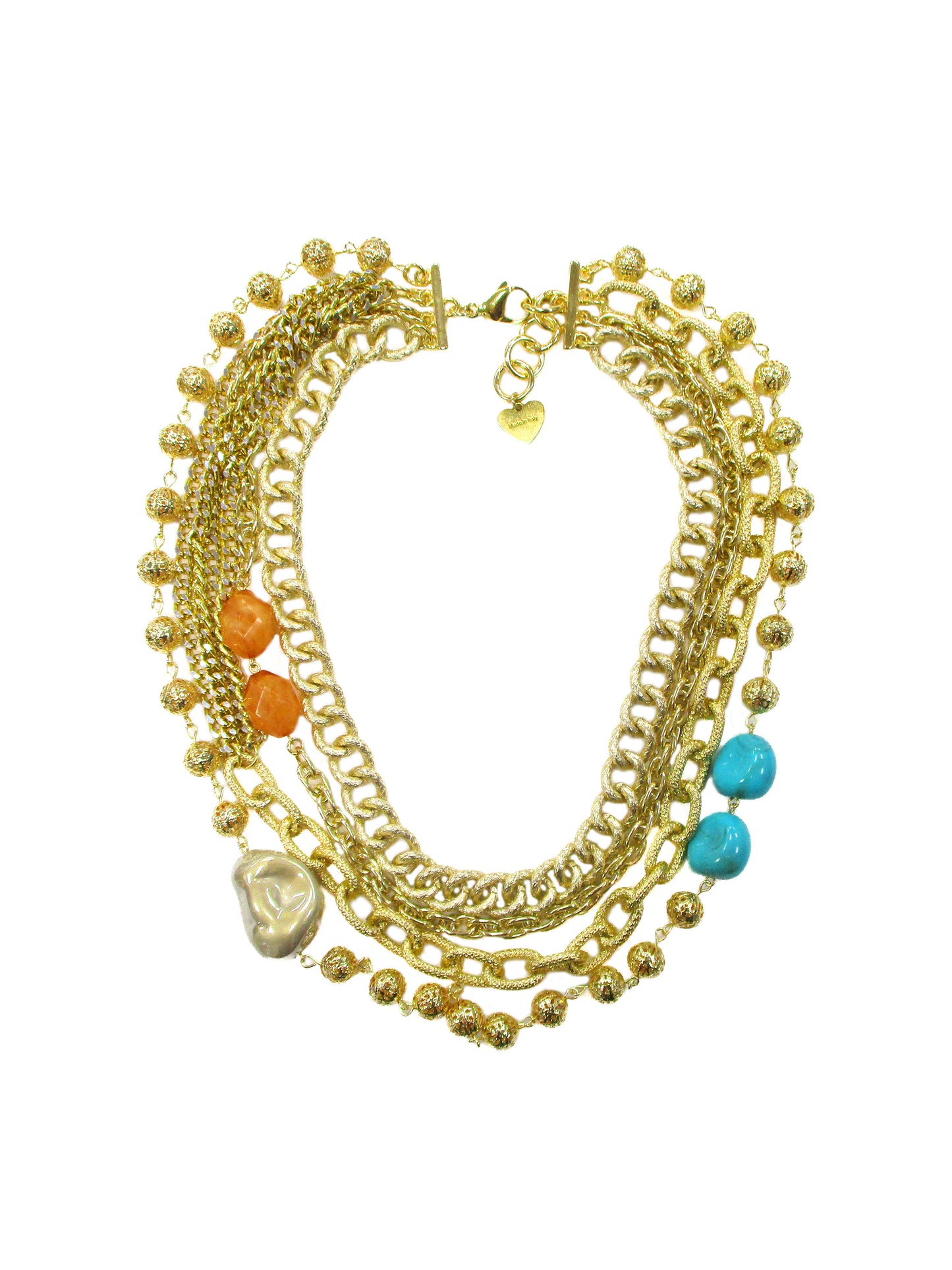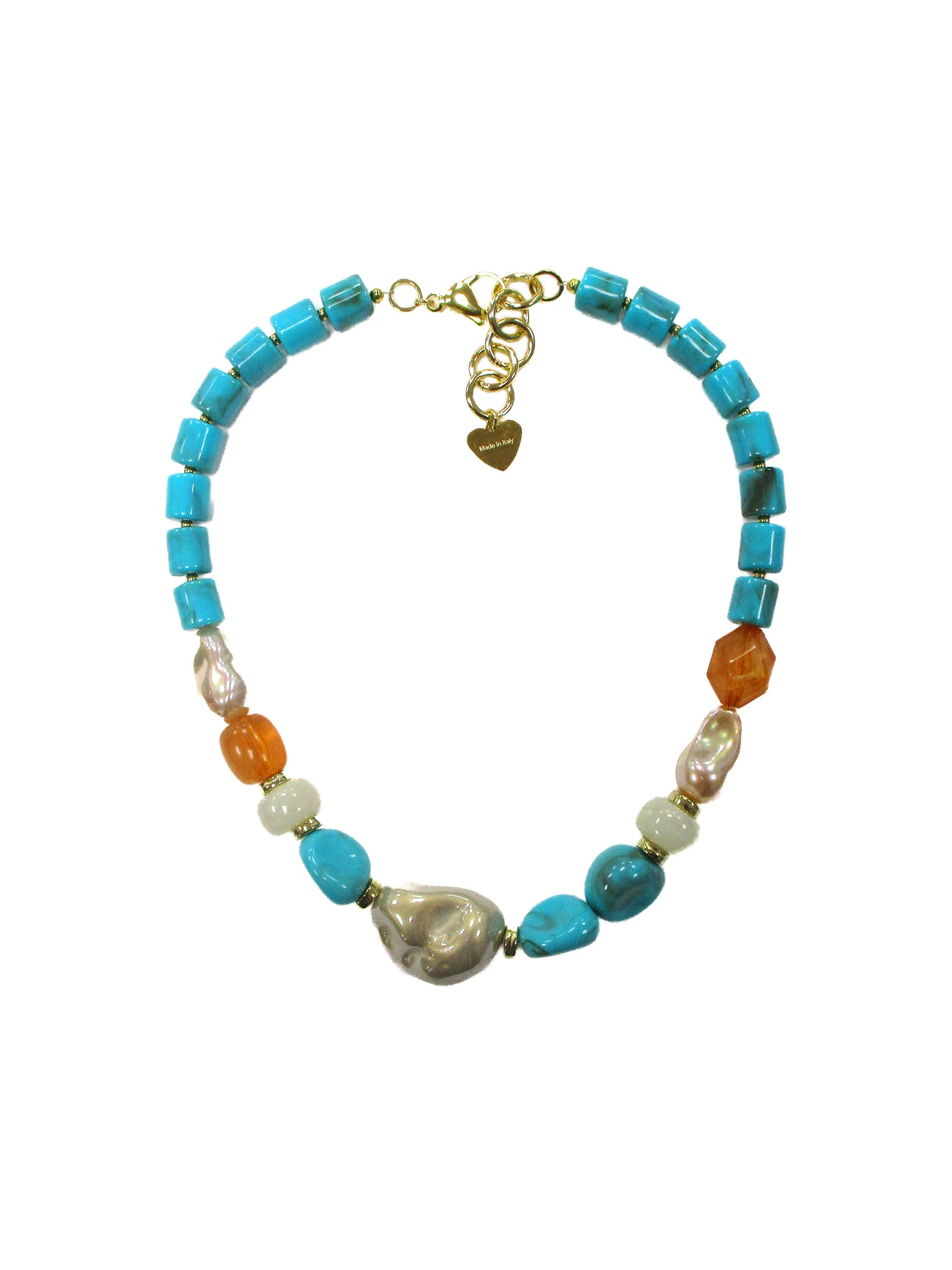 Girocollo infilato con resine e motivo centrale in perla Galapagos