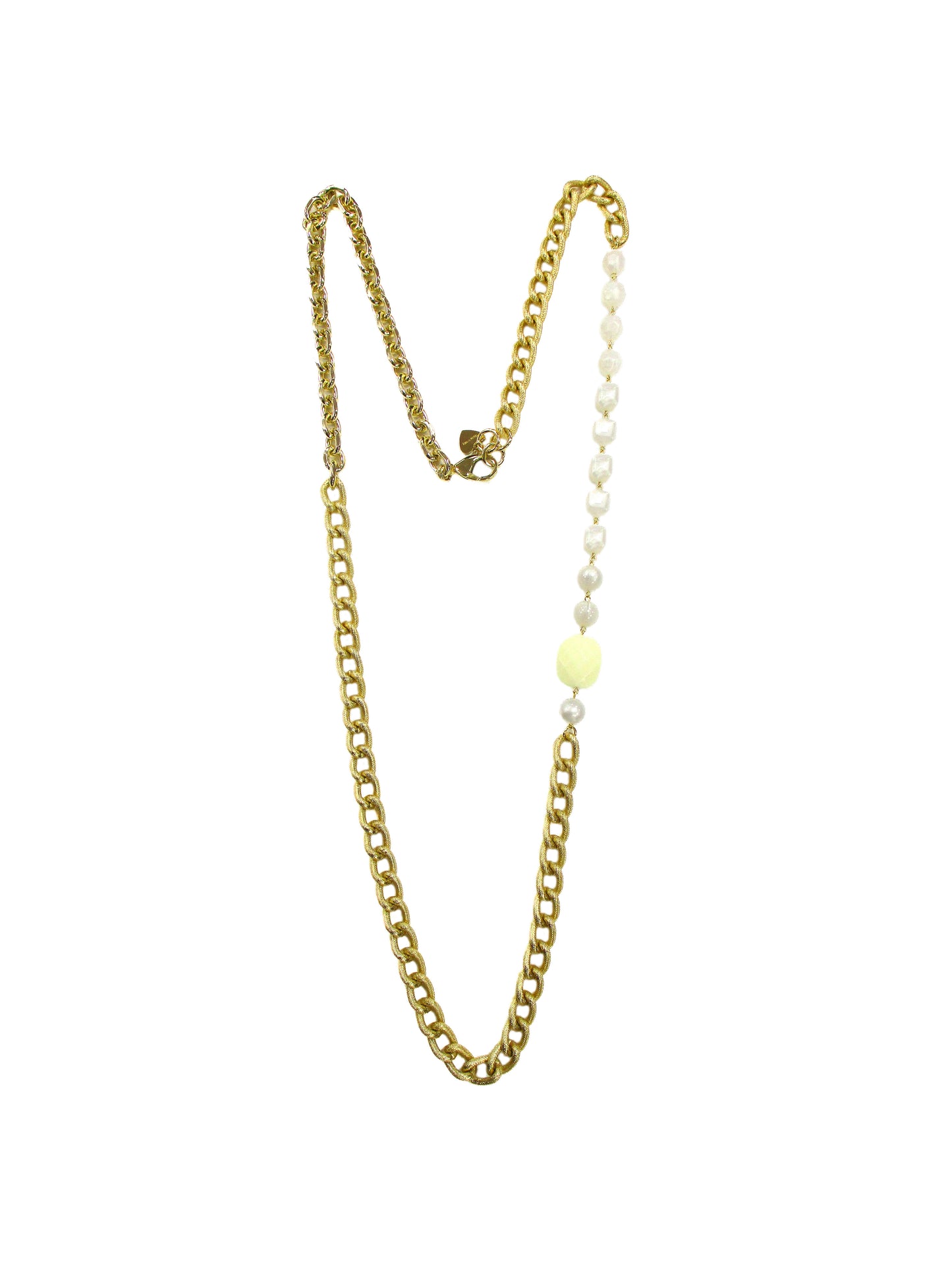 Collana con catena color oro e inserto di resine incatenate - Vaniglia